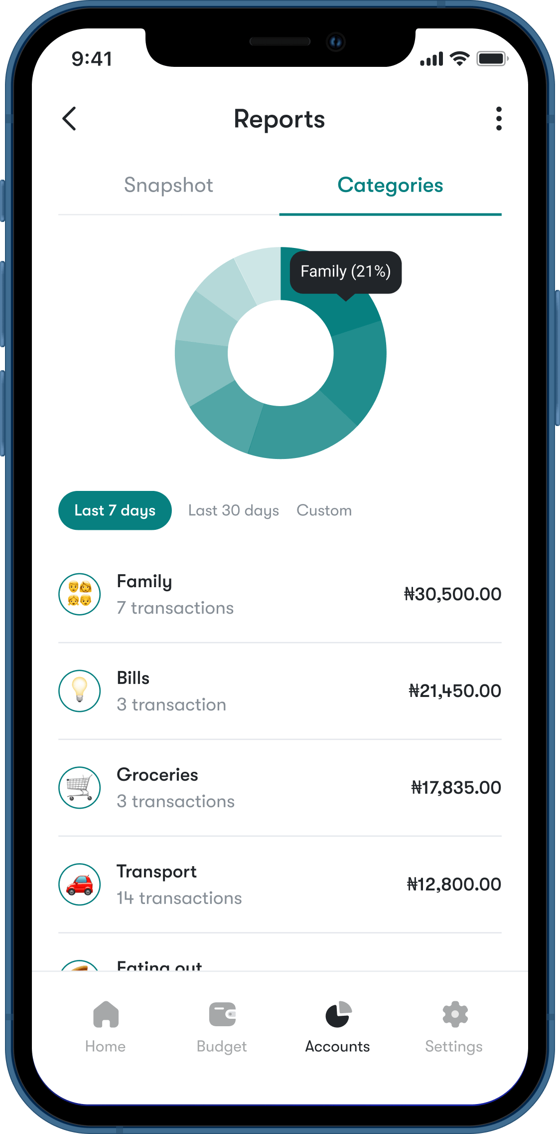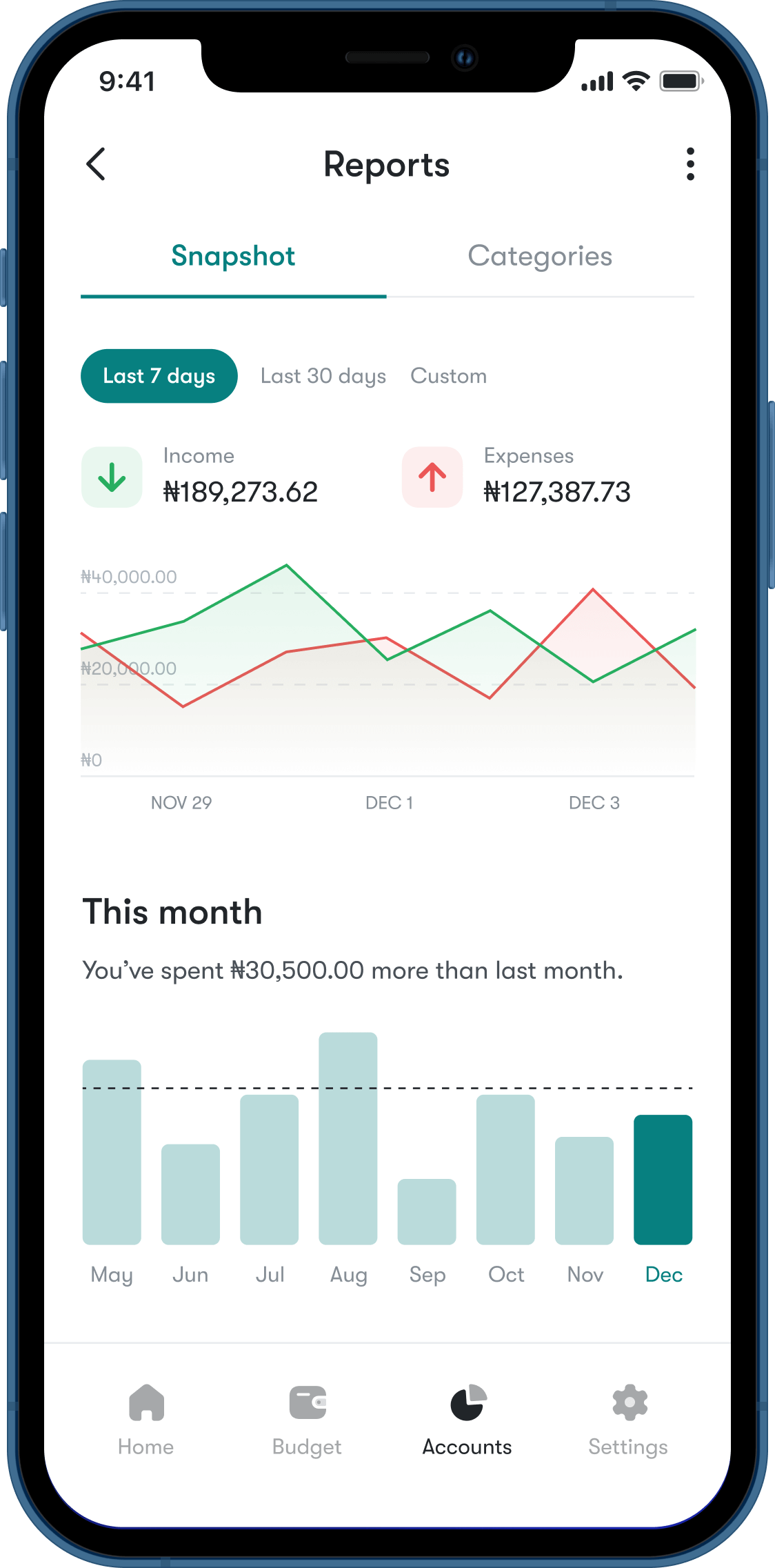 Here, users can gain more insight into their financial activity over periods of time. Users can also get a historical overview of their budget performance.