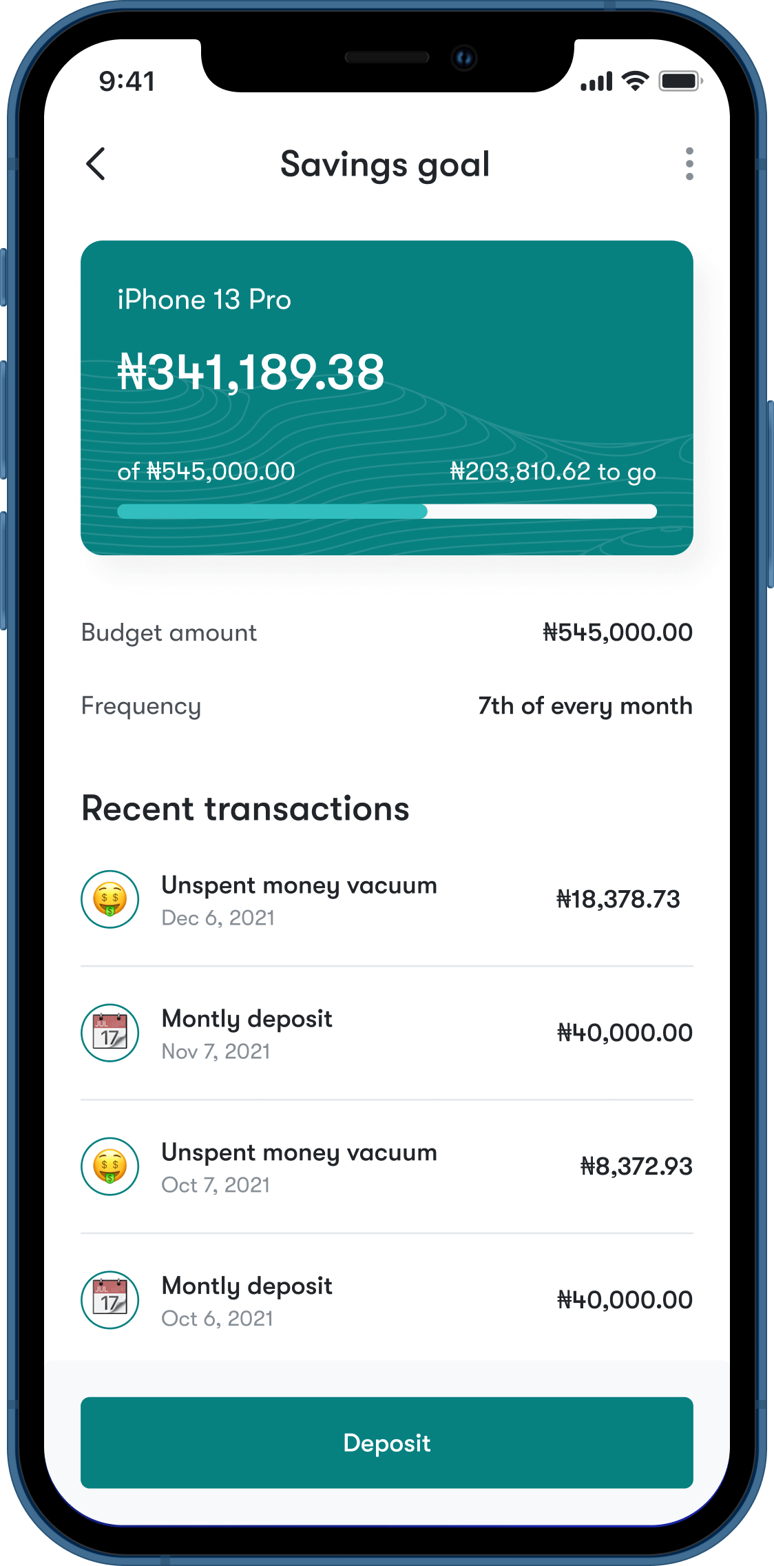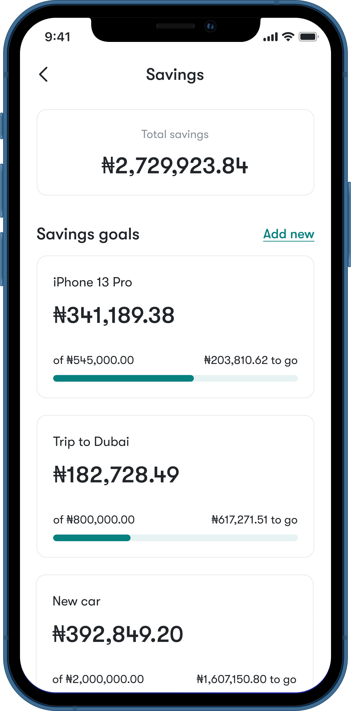 Users get immediate insight into their savings performance, including how much has been saved and how much is left to go on their goals.