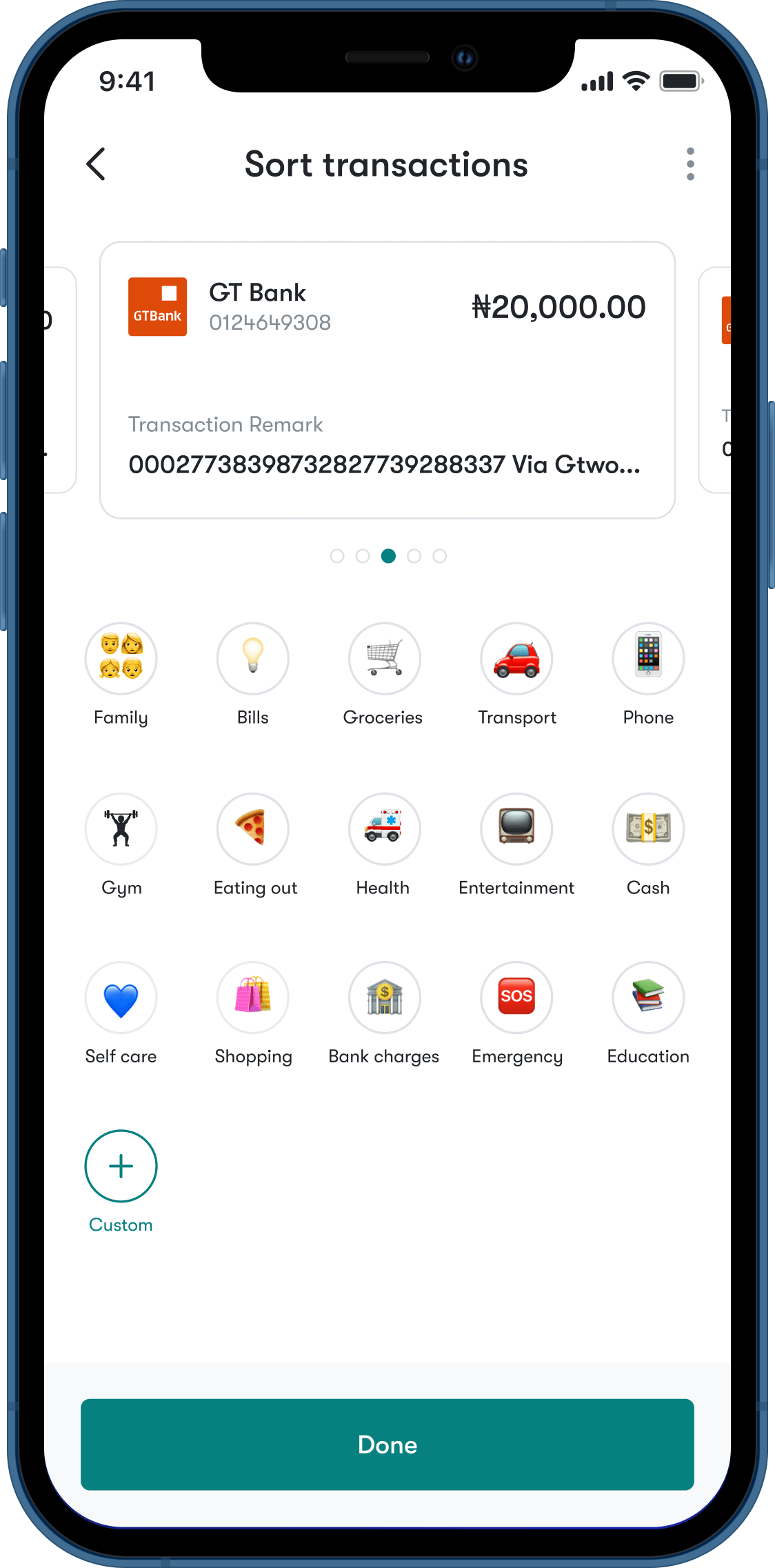 - Manual categorisation: Using the algorithm or previous categorisation is limited because similar transactions do not always mean the same category. Here, the user can override the first two levels of sorting.