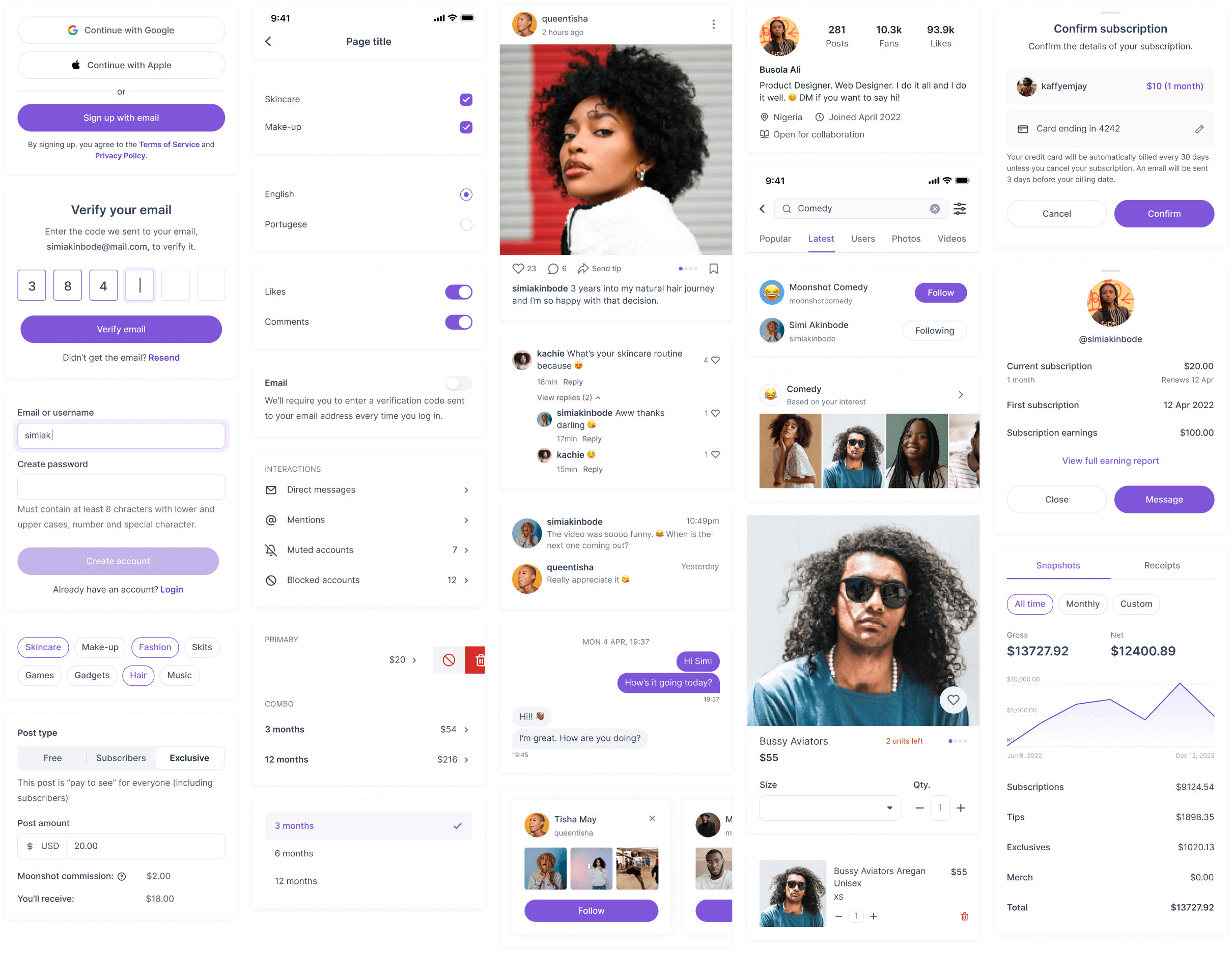 Moonshot is a social media app that connects content creators and their fans, and helps to monetise interest. On the one hand, the app provides creators a range of tools to publish content, moderate their audiences and manage monetisation. On the other, it helps fans to discover and reward great content in a variety of ways.
